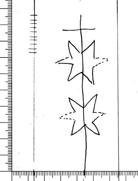 Tipo de filigrana: Sencilla Parte estudiada: Toda la filigrana Código del Motivo: J.03.02.00 Descripción: Dos estrellas Estructura: Tradicional de líneas Altura (mm): 98 Anchura (mm): [33] Tipo de papel: Verjurado Posición en la hoja: Medio centro Nº de corondeles en la hoja: 9 Distancia entre corondeles: Posición en relación al texto: Origen de los datos: Datos obtenidos del frotado País de localizatión del molino: Italia Estado de la hoja: Cortados todos los bordes Altura de la hoja: Anchura de la hoja: Color de la hoja: Natural Institución: Archivo del Monasterio de Sant Pere de les Puel·les -AMSP-