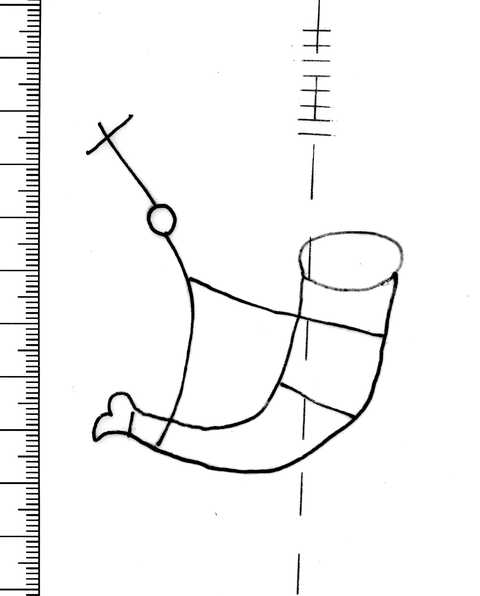 Tipo de filigrana: Sencilla Parte estudiada: Toda la filigrana Código del Motivo: O.03.02.03 Descripción: Cuerno de música con cuerda. Encima cruz Estructura: Tradicional de líneas Altura (mm): 78 Anchura (mm): 60 Tipo de papel: Verjurado Posición en la hoja: Medio centro Distancia entre corondeles: Posición en relación al texto: Origen de los datos: Datos obtenidos del frotado País de localizatión del molino: Italia Estado de la hoja: Cortados todos los bordes Altura de la hoja: Anchura de la hoja: Color de la hoja: Natural Institución: Archivo del Monasterio de Sant Pere de les Puel·les -AMSP