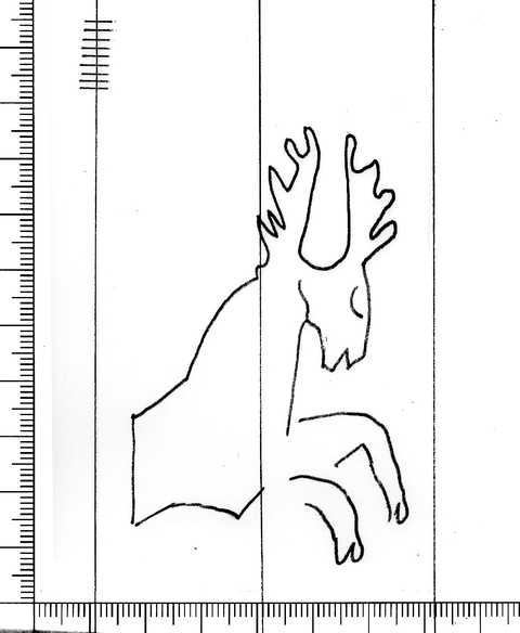 Tipo de filigrana: Sencilla Parte estudiada: Toda la filigrana Código del Motivo: C.03.02.00 Descripción: Ciervo, media figura Estructura: Tradicional de líneas Altura (mm): 80 Anchura (mm): 50 Tipo de papel: Verjurado Posición en la hoja: Medio centro Distancia entre corondeles: Situada entre el corondel 5 y el corondel 2 Posición en relación al texto: Origen de los datos: Datos obtenidos del frotado País de localizatión del molino: Italia Estado de la hoja: Cortados todos los bordes Altura de la hoja: Anchura de la hoja: Color de la hoja: Natural Institución: Archivo del Monasterio de Sant Pere de les Puel·les -AMSP