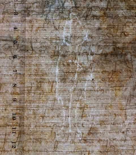 Tipo de filigrana: Sencilla Parte estudiada: Toda la filigrana Código del Motivo: E.01.01.00 Descripción: Pez genérico. Estructura: Tradicional de líneas Altura (mm): 26 Anchura (mm): 89 Tipo de papel: Verjurado Posición en la hoja: Derecha centro Nº de corondeles en la hoja: 12 Distancia entre corondeles: 28-37-37-36-37-39-36-37-(27)-27-34-35-32. Situada entre el corondel 8 y el corondel 19 Posición en relación al texto: Perpendicular al texto hacia arriba Origen de los datos: Datos obtenidos del original Autor de los datos de este registro: María Dolores Díaz de Miranda Macías Estado de la hoja: Cortados todos los bordes Altura de la hoja: 297 Anchura de la hoja: 442 Color de la hoja: Natural Estado de conservación: Restaurado Institución: Arxiu del Monestir de Sant Joan de les Abadesses