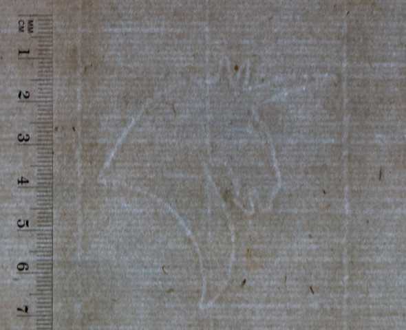 Tipo de filigrana: Sencilla Parte estudiada: Toda la filigrana Código del Motivo: F.06.03.00 Descripción: Unicornio, cabeza. Estructura: Tradicional de líneas Altura (mm): 59 Anchura (mm): 56 Tipo de papel: Verjurado Posición en la hoja: Izquierda centro Nº de corondeles en la hoja: 12 Distancia entre corondeles: 29-36-37-(30)-(31)-36-38-38-36-38-37-37-25 Situada entre el corondel 3 y el corondel 5 Posición en relación al texto: Perpendicular al texto hacia arriba Origen de los datos: Datos obtenidos del original Información adicional: Filigrana gemela con 000838. País de localizatión del molino: Italia. Autor de los datos de este registro: María Dolores Díaz de Miranda Macías Estado de la hoja: Sin cortar bordes Altura de la hoja: 300 Anchura de la hoja: 448 Color de la hoja: Natural Estado de conservación: Restaurado (Datos tomados antes de restaurar) Institución: Arxiu del Monestir de Sant Joan de les Abadesses