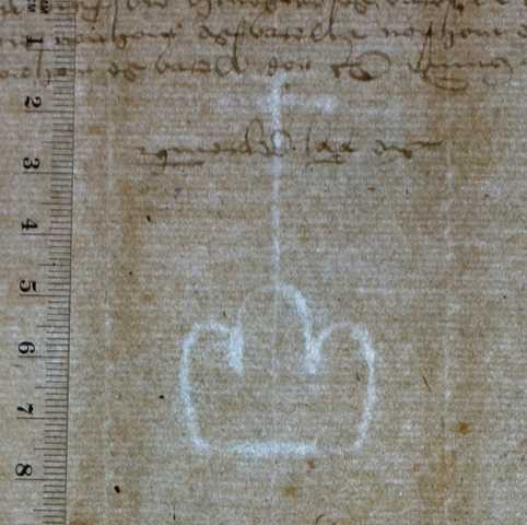 Tipo de filigrana: Sencilla Parte estudiada: Toda la filigrana Código del Motivo: H.01.02.00 Descripción: Montaña de tres picos. Encima una cruz Estructura: Tradicional de líneas Altura (mm): 66 Anchura (mm): 32 Tipo de papel: Verjurado Posición en la hoja: Izquierda centro Nº de corondeles en la hoja: 12 Distancia entre corondeles: 32-38-36-(27)-(27)-37-37-37-35-36-37-35-34 Situada entre el corondel 3 y el corondel 5 Posición en relación al texto: Perpendicular al texto hacia arriba Origen de los datos: Datos obtenidos del original País de localizatión del molino: Italia Autor de los datos de este registro: María Dolores Díaz de Miranda Macías Estado de la hoja: Cortados todos los bordes Altura de la hoja: 296 Anchura de la hoja: 448 Color de la hoja: Natural Estado de conservación: Restaurado (Datos tomados antes de restaurar) Institución: Arxiu del Monestir de Sant Joan de les Abadesses