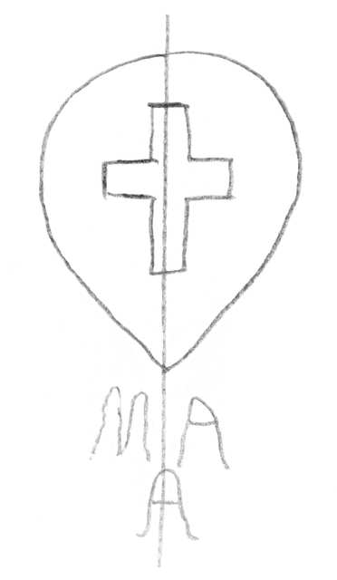 Tipo de filigrana: Sencilla Parte estudiada: Toda la filigrana Código del Motivo: S.01.03.02 Descripción: Cruz dentro de un óvalo en forma de corazón.. Fuera letras: MA/A Estructura: Tradicional de líneas Altura (mm): 50 Anchura (mm): Tipo de papel: Verjurado Posición en la hoja: Medio centro Nº de corondeles en la hoja: 8 Distancia entre corondeles: 5-35-32-(27)-(22)-33-27-26-10 Situada entre el corondel 3 y el corondel 5 Posición en relación al texto: Sin texto Origen de los datos: Datos obtenidos del original País de localizatión del molino: Italia Lugar del molino: Génova Autor de los datos de este registro: María Dolores Díaz de Miranda Macías Estado de la hoja: Cortado borde derecho Altura de la hoja: 311 Anchura de la hoja: 217 Color de la hoja: Natural Estado de conservación: Regular pH del papel: 7pH Institución: Biblioteca Pública Episcopal de Barcelona -BPEB-
