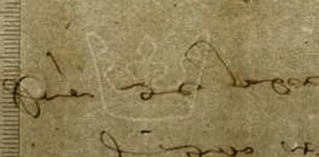 Tipo de filigrana: Sencilla Parte estudiada: Toda la filigrana Código del Motivo: R.01.01.01 Descripción: Corona con tres florones Estructura: Tradicional de líneas Altura (mm): 20 Anchura (mm): 27 Tipo de papel: Verjurado Posición en la hoja: Izquierda centro Nº de corondeles en la hoja: 13 Distancia entre corondeles: Situada entre el corondel 3 y el corondel 5 Posición en relación al texto: Perpendicular al texto hacia abajo Origen de los datos: Datos obtenidos del original Autor de los datos de este registro: María Dolores Díaz de Miranda Macías Estado de la hoja: Sin cortar bordes Altura de la hoja: 303 Anchura de la hoja: 424 Color de la hoja: Natural Estado de conservación: Regular Institución: Arxivo Ducal de Medinaceli -ADM-