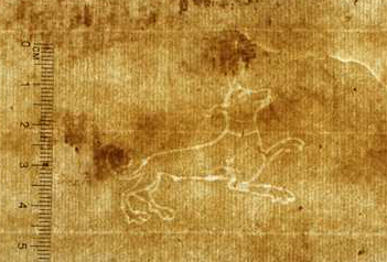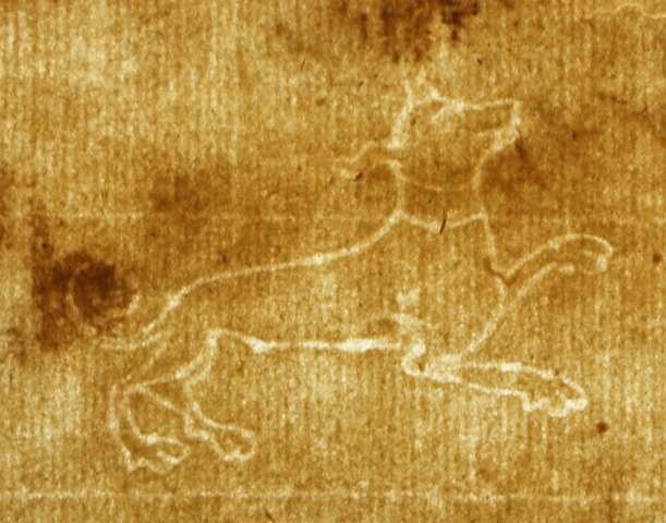 Tipo de filigrana: Sencilla Parte estudiada: Toda la filigrana Código del Motivo: C.06.00.00 Descripción: Perro corriendo. Con collar al cuello Estructura: Tradicional de líneas Altura (mm): 50 Anchura (mm): 37 Tipo de papel: Verjurado Posición en la hoja: Medio centro Nº de corondeles en la hoja: 7 Distancia entre corondeles: 13-26-26-(25)-(25)-27-25-[28] Situada entre el corondel 3 y el corondel 5 Posición en relación al texto: Paralelo al texto en sentido contrario Origen de los datos: Datos obtenidos del original Información adicional: Filigrana horizontal Autor de los datos de este registro: María Dolores Díaz de Miranda Macías Estado de la hoja: Cortados todos los bordes Altura de la hoja: 275 Anchura de la hoja: 195 Color de la hoja: Natural Estado de conservación: Restaurado Institución: Bibliotea Pública Episcopal de Barcelona -BPEB-