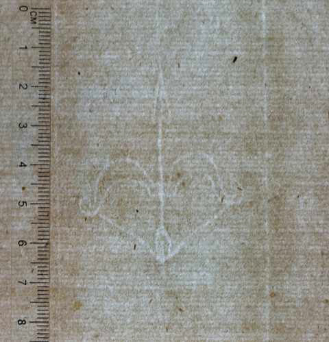 Tipo de filigrana: Sencilla Parte estudiada: Toda la filigrana Código del Motivo: M.02.01.00 Descripción: Arco sin motivos secundarios Estructura: Tradicional de líneas Altura (mm): 51 Anchura (mm): 42 Tipo de papel: Verjurado Posición en la hoja: Izquierda centro Nº de corondeles en la hoja: 13 Distancia entre corondeles: Situada entre el corondel 3 y el corondel 5 Posición en relación al texto: Perpendicular al texto hacia abajo Origen de los datos: Datos obtenidos del original Autor de los datos de este registro: María Dolores Díaz de Miranda Macías Estado de la hoja: Cortados todos los bordes Altura de la hoja: 290 Anchura de la hoja: 435 Color de la hoja: Natural Estado de conservación: Bueno Institución: Arxiu del Monestir de Sant Pere de les Puel·les -AMSP-