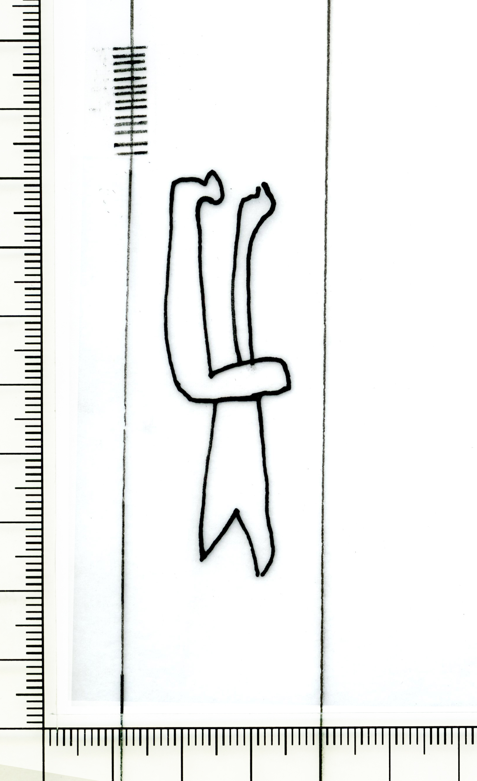 Tipo de filigrana: Sencilla Parte estudiada: Toda la filigrana Código del Motivo: V.01.17.00 Descripción: Letra gótica “p” sencilla, sin ningún motivo secundario. El eje vertical se bifurca en la parte inferior (los pies) y el horizontal atraviesa por delante al vertical sobrepasándolo. El inicio del trazo horizontal está separado del vertical. Estructura: Tradicional de líneas Altura (mm): 57 Anchura (mm): 20 Tipo de papel: 18 Posición en la hoja: Izquierda centro Distancia entre corondeles: Situada entre el corondel 4 y el corondel 5 Posición en relación al texto: Perpendicular al texto hacia arriba Origen de los datos: Datos obtenidos del original País de localizatión del molino: Alemania o Francia Autor de los datos de este registro: María Dolores Díaz de Miranda Macías Estado de la hoja: Cortados todos los bordes Altura de la hoja: 411 Anchura de la hoja: 556 Color de la hoja: Natural Estado de conservación: Restaurado pH del papel: Verjurado Institución: I-25/BT. (Antigua 30-31)