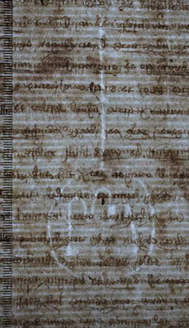 Fondo: fol. 4r-5v Signatura: Ampurias País de uso del papel: España Lugar de uso del papel: Comarca del Ampurdán, Gerona, Cataluña Fecha de uso del papel (año): 1402 Modo de datación: Tomada de la hoja Título/Resumen: Proceso entre los reyes Martín y María de Aragón y su procurador patrimonial contra Francesch Desvilar y su mujer Catarina sobre un censal de pensión de doce libras y media sobre el castillo de Siurana. | |