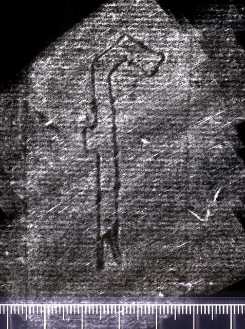 Tipo de filigrana: Sencilla Parte estudiada: Toda la filigrana Código del Motivo: V.01.06.00 Descripción: Letra gótica minúscula f, sin motivos secundarios, el eje vertical en el extremo inferior se bifurca. Estructura: Tradicional de líneas Altura (mm): 64 Anchura (mm): 21 Tipo de papel: 13 Posición en la hoja: Izquierda centro Distancia entre corondeles: Situada entre el corondel 10 y el corondel 11 Posición en relación al texto: Perpendicular al texto hacia arriba Origen de los datos: Datos obtenidos del original Autor de los datos de este registro: María Dolores Díaz de Miranda Macías Estado de la hoja: Cortados todos los bordes Altura de la hoja: 411 Anchura de la hoja: 571 Color de la hoja: Estado de conservación: Restaurado pH del papel: Verjurado Institución: I-25/BT. (Antigua 30-31)