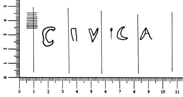 Tipo de filigrana: Sencilla Parte estudiada: Toda la filigrana Código del Motivo: W.03.00.00 Descripción: Palabra: CIVICA. Estructura: Tradicional de líneas Altura (mm): 8 Anchura (mm): 71 Tipo de papel: Verjurado Posición en la hoja: Izquierda centro Nº de corondeles en la hoja: 19 Distancia entre corondeles: Situada entre el corondel 4 y el corondel 8 Posición en relación al texto: Origen de los datos: Datos obtenidos del original País de localizatión del molino: España Lugar del molino: Barrio de Cívica en municipio de Villaviciosa, partido de Brihuega, Guadalajara. Fabricante: Monjes JerOnimos del monasterio de San Blas o Bartolomé Monjelos. Autor de los datos de este registro: María Dolores Díaz de Miranda Macías y Ana María Herrero Montero Tipo de uso: Papel para imprimir Estado de la hoja: Cortados todos los bordes Altura de la hoja: 309 Anchura de la hoja: 422 Color de la hoja: Natural Información adicional: Traslado por el Jefe Político de la Provincia, D. Manuel María de Acevedo, de un Decreto de las Cortes. Ff. 108-114. Institución: Archivo Municipal de Oviedo.
