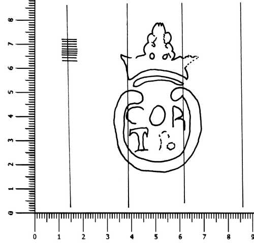 Tipo de filigrana: Sencilla Parte estudiada: Toda la filigrana Código del Motivo: T.02.17.00 Descripción: Escudo coronado y en su interior la palabra CORTES. Estructura: Tradicional de líneas Altura (mm): 62 Anchura (mm): 35 Tipo de papel: Verjurado Posición en la hoja: Izquierda centro Nº de corondeles en la hoja: 19 Distancia entre corondeles: Situada entre el corondel 4 y el corondel 7 Posición en relación al texto: Origen de los datos: Datos obtenidos del original País de localizatión del molino: España Lugar del molino: Calmarza, Zaragoza. Fabricante: Cortés Autor de los datos de este registro: María Dolores Díaz de Miranda Macías y Ana María Herrero Montero Tipo de uso: Papel sellado Estado de la hoja: Sin cortar bordes Altura de la hoja: 310 Anchura de la hoja: 424 Color de la hoja: Natural Información adicional: Está formada por una filigrana principal y una secundaria. El pliego tiene dos estilos; el primero se encuentra en los folios 35-36, 48-49, 269-270, 307-310 y 308-309; el segundo en los folios 60-61, 95-96, 145-149, 212-213 y 216-217. La filigrana principal tiene, a su vez, los dos estilos del pliego y aparecen el primero en los folios 28, 50, 52, 63, 161, 207 y 218 y el segundo en los folios 33, 34 y 202; la secundaria tiene un tercer estilo además de los dos del pliego: el primero en los folios 44, 150 y 209; el segundo en los folios 80 y 268, y el tercero en los folios 37, 208, 210 y 215. Institución: Archivo Municipal de Oviedo.