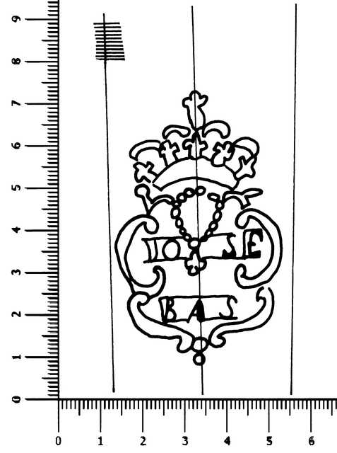 Tipo de filigrana: Sencilla Parte estudiada: Toda la filigrana Código del Motivo: T.02.15.10 Descripción: Círculo orlado y sobremontado por una corona; en el interior un rosario y el nombre de José Bas. Estructura: Tradicional de líneas Altura (mm): 65 Anchura (mm): 39 Tipo de papel: Verjurado Posición en la hoja: Derecha centro Nº de corondeles en la hoja: 20 Distancia entre corondeles: Situada entre el corondel 15 y el corondel 17 Posición en relación al texto: Origen de los datos: Datos obtenidos del original Otros folios o signaturas del documento donde aparece la filigrana: Filigranas idénticas: Folios 501, 518-525 y 700-701 de este mismo libro. País de localizatión del molino: España Lugar del molino: La Riba, Tarragona. Fabricante: José Bas. Autor de los datos de este registro: María Dolores Díaz de Miranda Macías y Ana María Herrero Montero Tipo de uso: Papel para imprimir Estado de la hoja: Cortado borde superior e inferior Altura de la hoja: 308 Anchura de la hoja: 430 Color de la hoja: Natural Institución: Archivo Municipal de Oviedo.