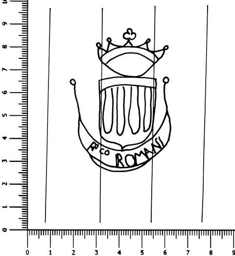 Tipo de filigrana: Doble Parte estudiada: Derecha Código del Motivo: T.04.01.04 Descripción: Filigrana doble. Filigrana izquierda: Capellades. Filigrana derecha: escudo de Cataluña; a los pies Fco ROMANI. Estructura: Tradicional de líneas Altura (mm): 63 Anchura (mm): 43 Tipo de papel: Verjurado Posición en la hoja: Derecha centro Nº de corondeles en la hoja: 20 Distancia entre corondeles: Situada entre el corondel 13 y el corondel 16 Posición en relación al texto: Origen de los datos: Datos obtenidos del original País de localizatión del molino: España Lugar del molino: Capellades, Barcelona. Fabricante: Francesc Romaní. Autor de los datos de este registro: María Dolores Díaz de Miranda Macías y Ana María Herrero Montero Tipo de uso: Papel para imprimir Estado de la hoja: Cortado borde inferior Altura de la hoja: 311 Anchura de la hoja: 410 Color de la hoja: Natural Institución: Archivo Municipal de Oviedo.