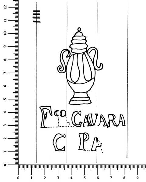Tipo de filigrana: Sencilla Parte estudiada: Toda la filigrana Código del Motivo: P.02.02.00 Descripción: Ánfora; en su base Fco. GAVARA/CPA. Estructura: Tradicional de líneas Altura (mm): 94 Anchura (mm): 66 Tipo de papel: Verjurado Posición en la hoja: Medio centro Nº de corondeles en la hoja: 9 Distancia entre corondeles: Situada entre el corondel 3 y el corondel 6 Posición en relación al texto: Origen de los datos: Datos obtenidos del original Fabricante: Francisco Gavara y compañía. Autor de los datos de este registro: María Dolores Díaz de Miranda Macías y Ana María Herrero Montero Tipo de uso: Papel para imprimir Estado de la hoja: Cortado borde izquierdo Altura de la hoja: 313 Anchura de la hoja: 207 Color de la hoja: Natural Institución: Archivo Municipal de Oviedo.