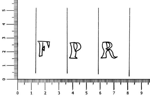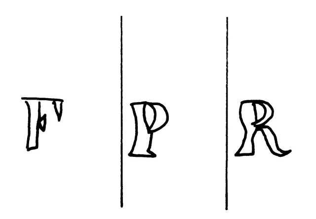 Tipo de filigrana: Doble Parte estudiada: Derecha Código del Motivo: V.03.00.00 Descripción: Filigrana doble con contramarca. Filigrana izquierda: CAPELLADS. Filigrana central: Escudo no identificado. Filigrana derecha: iniciasles FPR. Estructura: Tradicional de líneas Altura (mm): 13 Anchura (mm): 38 Tipo de papel: Verjurado Posición en la hoja: Derecha inferior Nº de corondeles en la hoja: 19 Distancia entre corondeles: Situada entre el corondel 16 y el corondel 19 Posición en relación al texto: Origen de los datos: Datos obtenidos del original País de localizatión del molino: España Lugar del molino: Cataluña. Fabricante: Filip Romaní Autor de los datos de este registro: María Dolores Díaz de Miranda Macías y Ana María Herrero Montero Tipo de uso: Papel para imprimir Estado de la hoja: Cortados todos los bordes Altura de la hoja: 310 Anchura de la hoja: 435 Color de la hoja: Natural Institución: Archivo Municipal de Oviedo.