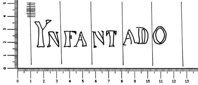 Tipo de filigrana: Sencilla Parte estudiada: Toda la filigrana Código del Motivo: W.99.00.00 Descripción: Letras YNFANTADO. Estructura: Tradicional de líneas Altura (mm): 20 Anchura (mm): 102 Tipo de papel: Verjurado Posición en la hoja: Derecha centro Nº de corondeles en la hoja: 10 Distancia entre corondeles: Situada entre el corondel 4 y el corondel 9 Posición en relación al texto: Origen de los datos: Datos obtenidos del original Otros folios o signaturas del documento donde aparece la filigrana: Filigranas idénticas: Folios 569, 579-580, 601-602, 607-608, 618-619, 622-623, 637, 642, 678-679, 652-655, 653-654, 684 y 691 de este mismo libro. País de localizatión del molino: España Lugar del molino: Pastrana, Guadalajara. Nombre del molino: Nombre del molino Infantado Fabricante: Fábrica Infantado. Autor de los datos de este registro: María Dolores Díaz de Miranda Macías y Ana María Herrero Montero Tipo de uso: Papel para escribir Estado de la hoja: Cortado borde superior, inferior y derecho Altura de la hoja: 301 Anchura de la hoja: 205 Color de la hoja: Natural Institución: Archivo Municipal de Oviedo.