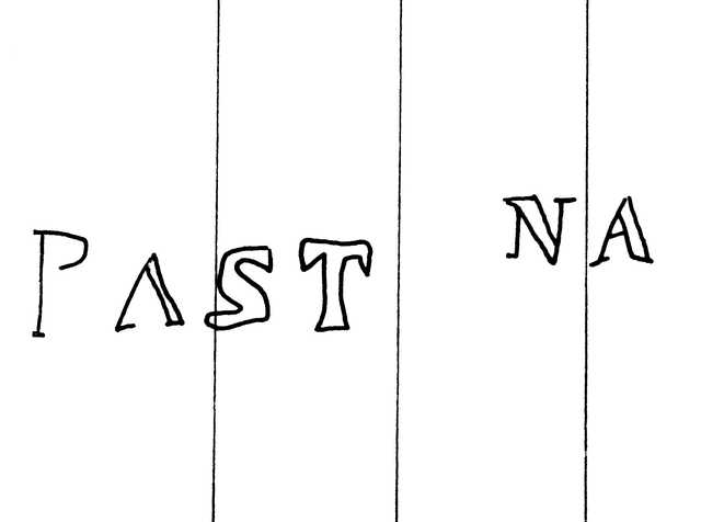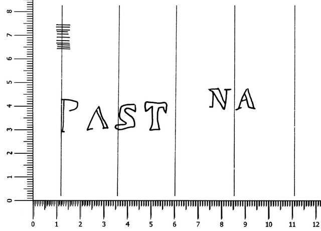 Tipo de filigrana: Doble Parte estudiada: Izquierda Código del Motivo: W.03.00.00 Descripción: Filigrana doble. Filigrana izquierda: letras PAST NA. Filigrana derecha: letras YNF TADO. Estructura: Tradicional de líneas Altura (mm): 17 Anchura (mm): 83 Tipo de papel: Verjurado Posición en la hoja: Izquierda centro Nº de corondeles en la hoja: 19 Distancia entre corondeles: Situada entre el corondel 5 y el corondel 9 Posición en relación al texto: Origen de los datos: Datos obtenidos del original País de localizatión del molino: España Lugar del molino: Pastrana, Guadalajara. Nombre del molino: Nombre del molino Infantado Fabricante: Fábrica de Infantado. Autor de los datos de este registro: María Dolores Díaz de Miranda Macías y Ana María Herrero Montero Tipo de uso: Papel para escribir Estado de la hoja: Cortados todos los bordes Altura de la hoja: 319 Anchura de la hoja: 444 Color de la hoja: Natural Institución: Archivo Municipal de Oviedo.