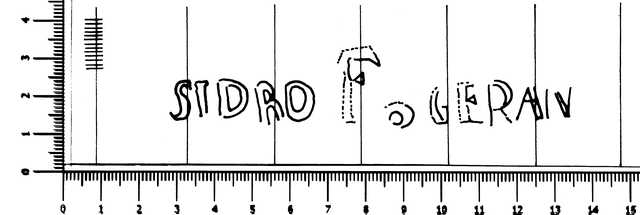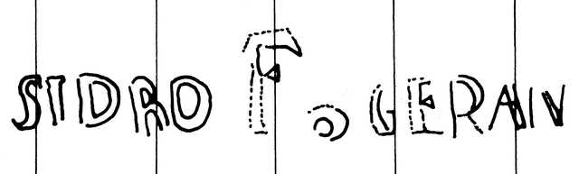 Tipo de filigrana: Sencilla Parte estudiada: Toda la filigrana Código del Motivo: W.04.01.00 Descripción: Letras SIDRO FOGERAN. Estructura: Tradicional de líneas Altura (mm): 23 Anchura (mm): 105 Tipo de papel: Verjurado Posición en la hoja: Derecha centro Nº de corondeles en la hoja: 9 Distancia entre corondeles: Situada entre el corondel 3 y el corondel 9 Posición en relación al texto: Origen de los datos: Datos obtenidos del original País de localizatión del molino: España Fabricante: Sidro ó Isidro Fogeran. Autor de los datos de este registro: María Dolores Díaz de Miranda Macías y Ana María Herrero Montero Tipo de uso: Papel para escribir Estado de la hoja: Cortados todos los bordes Altura de la hoja: 292 Anchura de la hoja: 208 Color de la hoja: Natural Estado de conservación: Restaurado Información adicional: El color de la hoja, Natural, no ha sufrido ninguna manipulación para cambiar sustancialmente el color natural de las fibras celulósicas; el leve lejiado de las fibras en la elaboración de la pulpa de papel lo consideramos una operación dentro del proceso de elaboración del papel. Institución: Archivo Municipal de Oviedo.