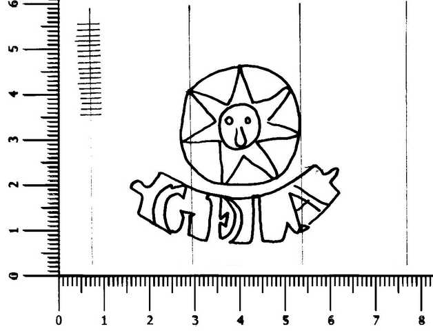 Tipo de filigrana: Sencilla Parte estudiada: Toda la filigrana Código del Motivo: J.01.01.04 Descripción: Sol dentro de un círculo, en la base cartela con GÐLA. Estructura: Tradicional de líneas Altura (mm): 39 Anchura (mm): 47 Tipo de papel: Verjurado Posición en la hoja: Derecha centro Nº de corondeles en la hoja: 17 Distancia entre corondeles: Situada entre el corondel 12 y el corondel 15 Posición en relación al texto: Origen de los datos: Datos obtenidos del original País de localizatión del molino: España Lugar del molino: La Riba, Tarragona. Fabricante: Joaquim Gardela Autor de los datos de este registro: María Dolores Díaz de Miranda Macías y Ana María Herrero Montero Tipo de uso: Papel sellado Estado de la hoja: Cortados todos los bordes Altura de la hoja: 291 Anchura de la hoja: 406 Color de la hoja: Natural Institución: Archivo Municipal de Oviedo.