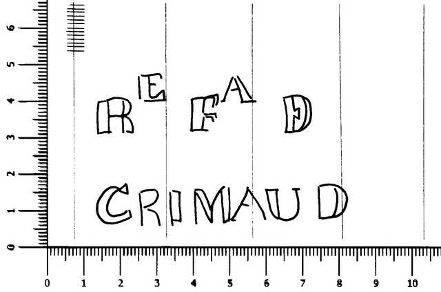 Tipo de filigrana: Sencilla Parte estudiada: Toda la filigrana Código del Motivo: W.02.01.00 Descripción: Letras: RE FA Ð / GRIMAUD. Estructura: Tradicional de líneas Altura (mm): 41 Anchura (mm): 69 Tipo de papel: Verjurado Posición en la hoja: Izquierda centro Nº de corondeles en la hoja: 17 Distancia entre corondeles: Situada entre el corondel 3 y el corondel 7 Posición en relación al texto: Origen de los datos: Datos obtenidos del original País de localizatión del molino: España Lugar del molino: Gárgoles de Arriba, Guadalajara. Fabricante: Santiago Grimaud Autor de los datos de este registro: María Dolores Díaz de Miranda Macías y Ana María Herrero Montero Tipo de uso: Papel sellado Estado de la hoja: Cortados todos los bordes Altura de la hoja: 289 Anchura de la hoja: 406 Color de la hoja: Natural Institución: Archivo Municipal de Oviedo.