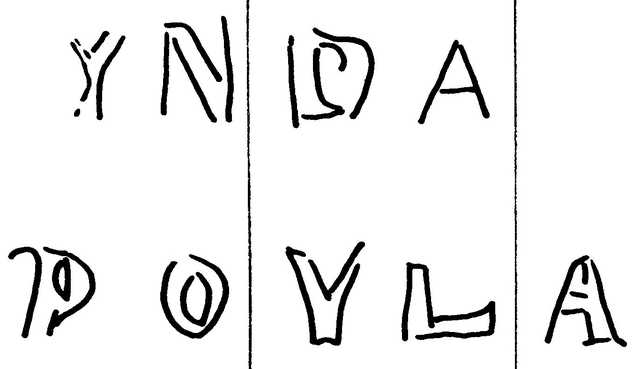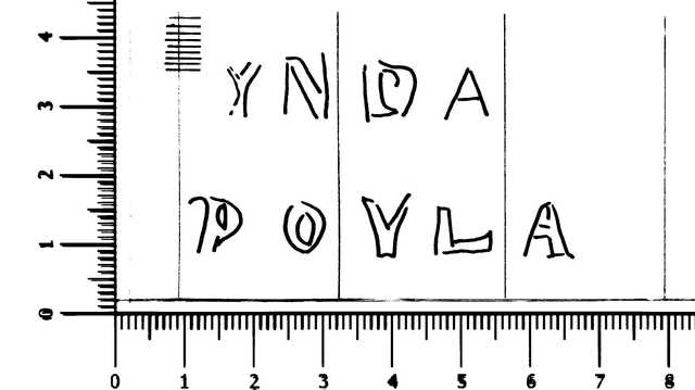 Tipo de filigrana: Sencilla Parte estudiada: Toda la filigrana Código del Motivo: W.04.02.00 Descripción: Letras INDA / POYLA. Estructura: Tradicional de líneas Altura (mm): 30 Anchura (mm): 57 Tipo de papel: Verjurado Posición en la hoja: Derecha centro Nº de corondeles en la hoja: 17 Distancia entre corondeles: Situada entre el corondel 11 y el corondel 14 Posición en relación al texto: Origen de los datos: Datos obtenidos del original País de localizatión del molino: España Lugar del molino: Castejón de las Armas, Zaragoza. Fabricante: Indalecio Poylau Autor de los datos de este registro: María Dolores Díaz de Miranda Macías y Ana María Herrero Montero Tipo de uso: Papel para escribir Estado de la hoja: Cortados todos los bordes Altura de la hoja: 299 Anchura de la hoja: 404 Color de la hoja: Natural Estado de conservación: Restaurado Información adicional: El color de la hoja, Natural, no ha sufrido ninguna manipulación para cambiar sustancialmente el color natural de las fibras celulósicas; el leve lejiado de las fibras en la elaboración de la pulpa de papel lo consideramos una operación dentro del proceso de elaboración del papel. Institución: Archivo Municipal de Oviedo.