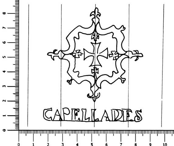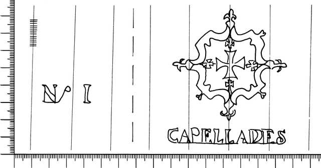 Tipo de filigrana: Doble Parte estudiada: Derecha Código del Motivo: T.02.15.03 Descripción: Filigrana doble. Filigrana izquierda: Nº 1. Filigrana derecha: Escudo con la cruz de Malta en su interior. En la base CAPELLADES. Estructura: Tradicional de líneas Altura (mm): 78 Anchura (mm): 65 Tipo de papel: Verjurado Posición en la hoja: Derecha centro Nº de corondeles en la hoja: 19 Distancia entre corondeles: Situada entre el corondel 13 y el corondel 17 Posición en relación al texto: Origen de los datos: Datos obtenidos del original País de localizatión del molino: España Lugar del molino: Capellades, Barcelona. Fabricante: Santiago Serra Autor de los datos de este registro: María Dolores Díaz de Miranda Macías y Ana María Herrero Montero Tipo de uso: Papel para imprimir Estado de la hoja: Cortados todos los bordes Altura de la hoja: 295 Anchura de la hoja: 414 Color de la hoja: Natural Institución: Archivo Municipal de Oviedo.