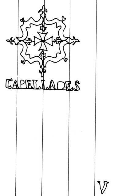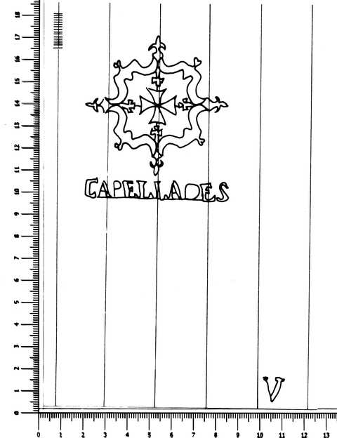 Tipo de filigrana: Sencilla Parte estudiada: Toda la filigrana Código del Motivo: T.02.15.03 Descripción: Escudo con la cruz de Malta en su interior. En la base CAPELLADES. Esta filigrana aparece sin contramarca, con la contramarca V abajo y a la derecha, o con la contramarca S abajo y a la derecha. En la imagen se muestra con la contramarca V. Estructura: Tradicional de líneas Altura (mm): 75 Anchura (mm): 65 Tipo de papel: Verjurado Posición en la hoja: Derecha centro Nº de corondeles en la hoja: 19 Distancia entre corondeles: Situada entre el corondel 12 y el corondel 16 Posición en relación al texto: Origen de los datos: Datos obtenidos del original País de localizatión del molino: España Lugar del molino: Capellades, Barcelona. Fabricante: Santiago Serra Autor de los datos de este registro: María Dolores Díaz de Miranda Macías y Ana María Herrero Montero Tipo de uso: Papel sellado Estado de la hoja: Cortados todos los bordes Altura de la hoja: 292 Anchura de la hoja: 412 Color de la hoja: Natural Estado de conservación: Restaurado Información adicional: El color de la hoja, Natural, no ha sufrido ninguna manipulación para cambiar sustancialmente el color natural de las fibras celulósicas; el leve lejiado de las fibras en la elaboración de la pulpa de papel lo consideramos una operación dentro del proceso de elaboración del papel. Institución: Archivo Municipal de Oviedo.