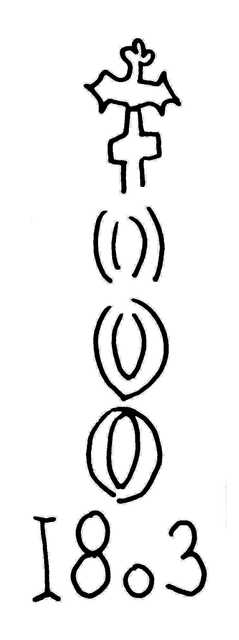 Tipo de filigrana: Doble Parte estudiada: Izquierda Código del Motivo: U.03.03.02 Descripción: Filigrana doble. Filigrana izquierda: tres círculos, con trazado doble, surmontados por una cruz lobulada, a los pies 1803. Filigrana derecha: J LASSALE. Estructura: Tradicional de líneas Altura (mm): 74 Anchura (mm): 24 Tipo de papel: Verjurado Posición en la hoja: Izquierda centro Nº de corondeles en la hoja: 16 Distancia entre corondeles: Situada entre el corondel 4 y el corondel 5 Posición en relación al texto: Origen de los datos: Datos obtenidos del original País de localizatión del molino: Francia Lugar del molino: Auch, Cassabe à Oloron y Vertvielle, Béarn. Fabricante: J. Lassale Autor de los datos de este registro: María Dolores Díaz de Miranda Macías y Ana María Herrero Montero Tipo de uso: Papel para escribir Estado de la hoja: Cortados todos los bordes Altura de la hoja: 291 Anchura de la hoja: 405 Color de la hoja: Natural Estado de conservación: Restaurado Información adicional: El color de la hoja, Natural, no ha sufrido ninguna manipulación para cambiar sustancialmente el color natural de las fibras celulósicas; el leve lejiado de las fibras en la elaboración de la pulpa de papel lo consideramos una operación dentro del proceso de elaboración del papel. Institución: Archivo Municipal de Oviedo.