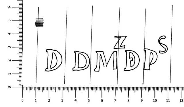 Tipo de filigrana: Doble Parte estudiada: Izquierda Código del Motivo: W.04.03.00 Descripción: Filigrana doble. Filigrana izquierda: letras DDMZDPS. Filigrana derecha: letras TORRLA. Estructura: Tradicional de líneas Altura (mm): 31 Anchura (mm): 84 Tipo de papel: Verjurado Posición en la hoja: Izquierda centro Nº de corondeles en la hoja: 23 Distancia entre corondeles: Situada entre el corondel 4 y el corondel 9 Posición en relación al texto: Origen de los datos: Datos obtenidos del original Autor de los datos de este registro: María Dolores Díaz de Miranda Macías y Ana María Herrero Montero Tipo de uso: Papel para escribir Estado de la hoja: Cortados todos los bordes Altura de la hoja: 300 Anchura de la hoja: 404 Color de la hoja: Natural Institución: Archivo Municipal de Oviedo.