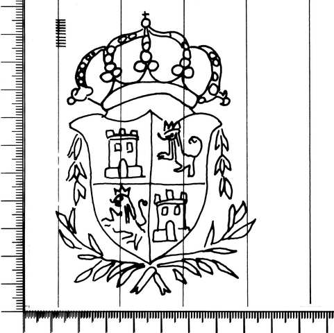 Tipo de filigrana: Doble Parte estudiada: Izquierda Código del Motivo: T.04.01.01 Descripción: Filigrana izquierda: Escudo de España simplificado con las armas de Castilla y León; en la base dos ramas de laurel Filigrana derecha: igual que la anterior y las iniciales ORC? entrelazadas (contramarca). Estructura: Tradicional de líneas Altura (mm): 104 Anchura (mm): 72 Tipo de papel: Verjurado Posición en la hoja: Izquierda centro Nº de corondeles en la hoja: 19 Distancia entre corondeles: Situada entre el corondel 3 y el corondel 7 Posición en relación al texto: Paralelo al texto en sentido contrario Origen de los datos: Información adicional: Descripción escudo: Versión simplificada del escudo de España. Cuarteado con las armas de Castilla y León). Corona real española, cerrada con ocho florones (visibles cinco). En el exterior bordeado por hojas de laurel. Con esta misma fiigrana (escudo) tenemos en este libro papel sin contramarca y con las contramarcas M, V, ME. Esta filigrana (escudo) se mantiene en los libros A- 132 al A-135, años 1831-1834; en el A-136 cambia el escudo con las iniciales de ISABEL. Fabricante: Romaní Oroní Autor de los datos de este registro: María Dolores Díaz de Miranda Macías Estado de la hoja: Cortados todos los bordes Altura de la hoja: 312 Anchura de la hoja: 430 Color de la hoja: Natural Institución: Archivo Municipal de Oviedo.