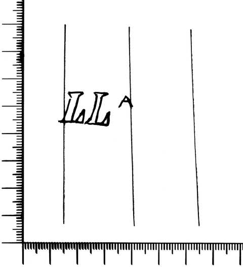 Tipo de filigrana: Contramarca Parte estudiada: La Contramarca Código del Motivo: V.02.01.00 Descripción: Filigrana izquierda: Escudo de España simplificado con las armas de Castilla y León; en el exterior ramas de laurel. Debajo 3ACE. Filigrana derecha: Igual que la anterior y y en el borde inferior la letras LLA (contramarca) Estructura: Tradicional de líneas Altura (mm): 12 Anchura (mm): 27 Tipo de papel: Verjurado Posición en la hoja: Derecha inferior Distancia entre corondeles: Posición en relación al texto: Perpendicular al texto hacia arriba Origen de los datos: Datos obtenidos del original Información adicional: Esta filigrana representa lo mismo que la 001190 pero cambia la contramarca. Lo que se estudia es la contramarca País de localizatión del molino: España Lugar del molino: Cataluña Fabricante: Llucià. Autor de los datos de este registro: María Dolores Díaz de Miranda Macías Estado de la hoja: Sin cortar bordes Altura de la hoja: [311-315] Anchura de la hoja: [430-444] Color de la hoja: Natural Estado de conservación: Bueno Institución: Archivo Municipal de Oviedo.