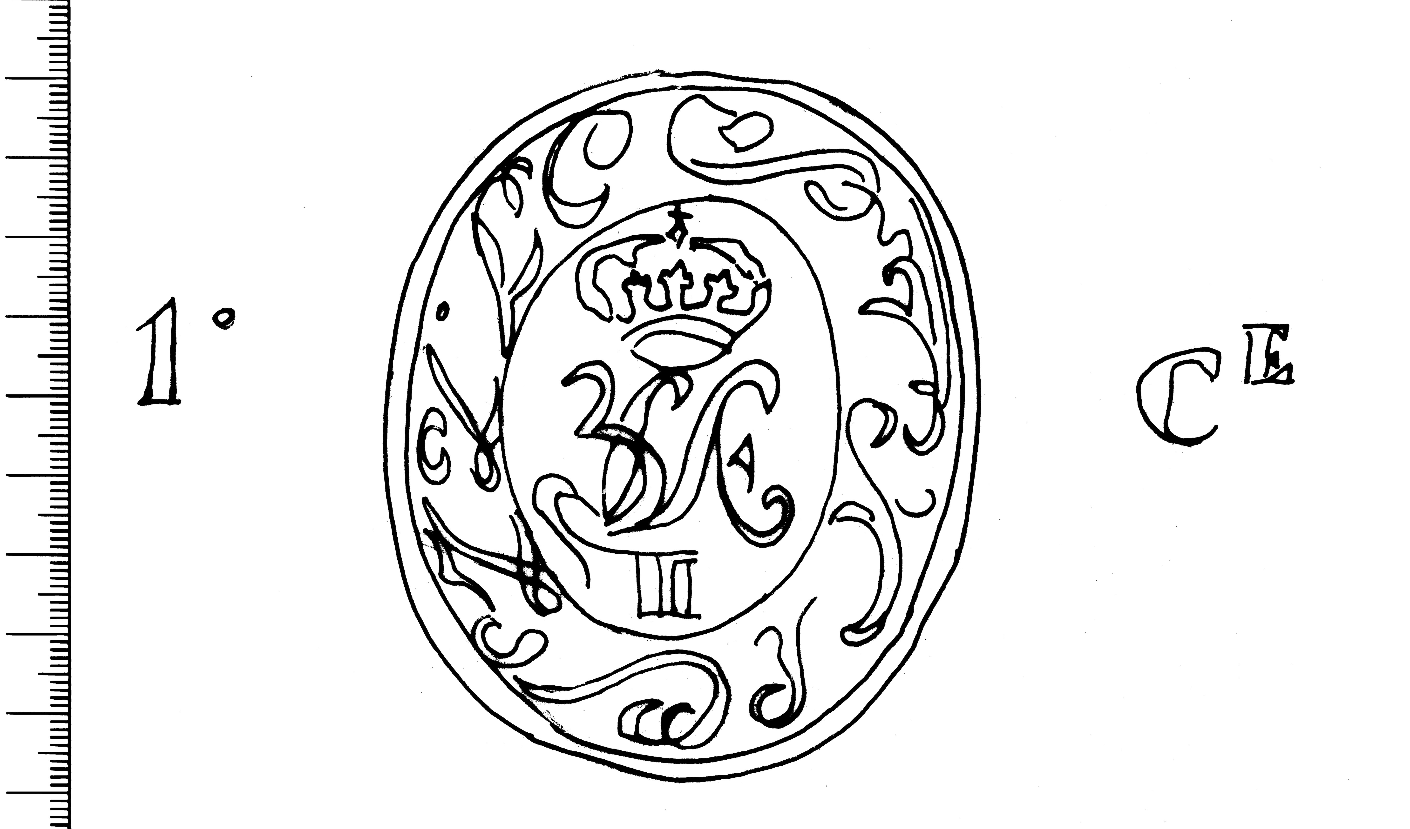 Tipo de filigrana: Sencilla Parte estudiada: Toda la filigrana Código del Motivo: T.02.17.00 Descripción: Escudo ovalado con orla vegetal. En el interior, el anagrama de la reina Isabel II coronado por una corona real. A los costados: 1º CE. Debajo las iniciales RF (contramarca). Estructura: Tradicional de líneas Altura (mm): 89 Anchura (mm): 146 Tipo de papel: Continuo Posición en la hoja: Derecha centro Distancia entre corondeles: Posición en relación al texto: Perpendicular al texto hacia abajo Origen de los datos: Datos obtenidos del original País de localizatión del molino: España Autor de los datos de este registro: María Dolores Díaz de Miranda Macías Estado de la hoja: Sin cortar bordes Altura de la hoja: 314 Anchura de la hoja: 434 Color de la hoja: Natural Estado de conservación: Restaurado Institución: Archivo Municipal de Oviedo.
