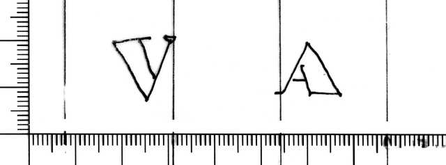 Tipo de filigrana: Doble Parte estudiada: La Contramarca Código del Motivo: V.02.01.00 Descripción: Filigrana izquierda: Escudo en losange con orla de motivos vegetales. Dentro, el anagrama de la reina Isabel II con corona , costeado por 3ºA/CºE. Filigrana derecha: igual que la izquierda pero debajo la inicial VA (Contramarca) Estructura: Tradicional de líneas Altura (mm): 14 Anchura (mm): 50 Tipo de papel: Verjurado Posición en la hoja: Derecha inferior Distancia entre corondeles: Media entre 23 y 24 Posición en relación al texto: Perpendicular al texto hacia arriba Origen de los datos: Datos obtenidos del original Información adicional: Esta filigrana representa lo mismo que la 001193 pero cambia la contramarca. Lo que se estudia es la contramarca País de localizatión del molino: España Autor de los datos de este registro: María Dolores Díaz de Miranda Macías Estado de la hoja: Sin cortar bordes Altura de la hoja: [311-315] Anchura de la hoja: [430-444] Color de la hoja: Natural Estado de conservación: Bueno Institución: Archivo Municipal de Oviedo.