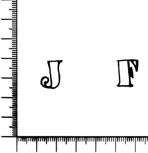 Tipo de filigrana: Sencilla Parte estudiada: Toda la filigrana Código del Motivo: V.02.01.00 Descripción: Letras JF. Estructura: Tradicional de líneas Altura (mm): 14 Anchura (mm): 49 Tipo de papel: Continuo Posición en la hoja: Derecha inferior Distancia entre corondeles: Posición en relación al texto: Perpendicular al texto hacia abajo Origen de los datos: Datos obtenidos del original País de localizatión del molino: España Lugar del molino: Cataluña Autor de los datos de este registro: María Dolores Díaz de Miranda Macías Estado de la hoja: Sin cortar bordes Altura de la hoja: 314 Anchura de la hoja: 434 Color de la hoja: Natural Estado de conservación: Bueno Institución: Archivo Municipal de Oviedo.