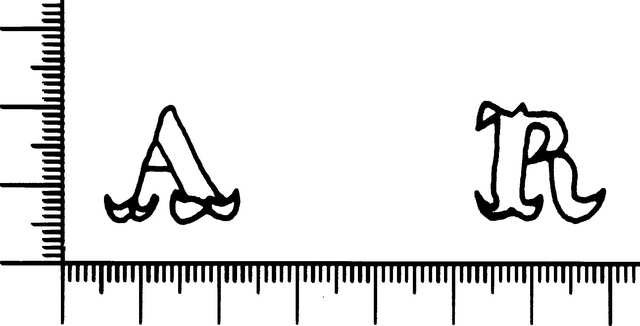 Tipo de filigrana: Doble Parte estudiada: Izquierda Código del Motivo: V.02.01.00 Descripción: Filigrana doble. Filigrana izquierda: letras A R. Filigrana derecha: letras Y MO. Estructura: Tradicional de líneas Altura (mm): 15 Anchura (mm): 63 Tipo de papel: Vitela Posición en la hoja: Izquierda inferior Distancia entre corondeles: Posición en relación al texto: Origen de los datos: Datos obtenidos del original País de localizatión del molino: España Lugar del molino: Capellades, Barcelona ? Fabricante: Antonio Romaní y Miró Autor de los datos de este registro: María Dolores Díaz de Miranda Macías Estado de la hoja: Cortado borde izquierdo e inferior Altura de la hoja: 312 Anchura de la hoja: 430 Color de la hoja: Natural Institución: Archivo Municipal de Oviedo.