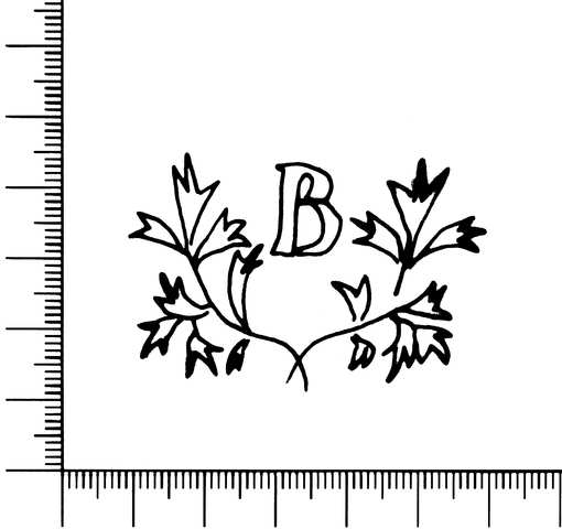 Tipo de filigrana: Doble Parte estudiada: Derecha Código del Motivo: V.02.02.00 Descripción: Filigrana izquierda: Letras J entre vegetales. Filigrana derecha: Letras B entre vegetales. Estructura: Tradicional de líneas Altura (mm): 32 Anchura (mm): 50 Tipo de papel: Continuo Posición en la hoja: Derecha inferior Distancia entre corondeles: Posición en relación al texto: Perpendicular al texto hacia arriba Origen de los datos: Datos obtenidos del original País de localizatión del molino: España Autor de los datos de este registro: María Dolores Díaz de Miranda Macías Estado de la hoja: Cortado borde derecho e inferior Altura de la hoja: 312 Anchura de la hoja: 430 Color de la hoja: Natural Institución: Archivo Municipal de Oviedo.