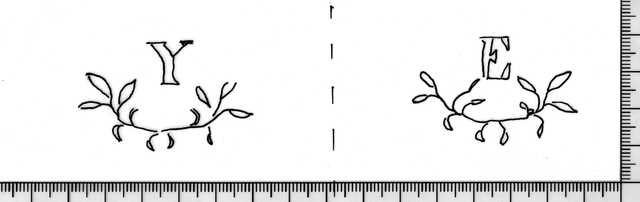 Tipo de filigrana: Doble Parte estudiada: Derecha Código del Motivo: V.02.02.00 Descripción: Filigrana izquierda: letra Y sobre hoja de laurel. Filigrana derecha: letra E sobre hoja de laurel. Estructura: Tradicional de líneas Altura (mm): 29 Anchura (mm): 45 Tipo de papel: Continuo Posición en la hoja: Derecha inferior Distancia entre corondeles: Posición en relación al texto: Perpendicular al texto hacia abajo Origen de los datos: Datos obtenidos del original País de localizatión del molino: España Lugar del molino: Cataluña Autor de los datos de este registro: María Dolores Díaz de Miranda Macías Estado de la hoja: Cortado borde inferior Altura de la hoja: 311 Anchura de la hoja: 430 Color de la hoja: Natural Estado de conservación: Bueno Institución: Archivo Municipal de Oviedo.