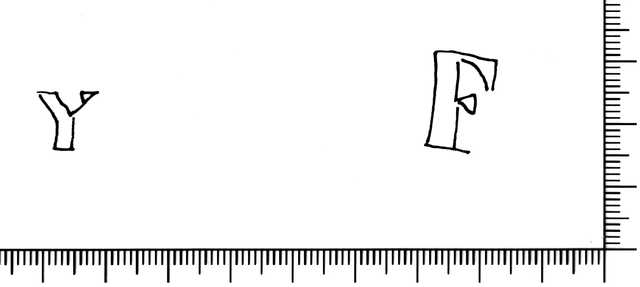 Tipo de filigrana: Doble Parte estudiada: Derecha Código del Motivo: V.01.06.00 Descripción: Filigrana izquierda: letras JV. Filigrana derecha: letra F. Estructura: Tradicional de líneas Altura (mm): 16 Anchura (mm): 74 Tipo de papel: Continuo Posición en la hoja: Derecha inferior Distancia entre corondeles: Posición en relación al texto: Perpendicular al texto hacia arriba Origen de los datos: Datos obtenidos del original País de localizatión del molino: España Lugar del molino: Cataluña Autor de los datos de este registro: María Dolores Díaz de Miranda Macías Estado de la hoja: Cortado borde izquierdo Altura de la hoja: 309 Anchura de la hoja: 420 Color de la hoja: Natural Estado de conservación: Bueno Institución: Archivo Municipal de Oviedo.