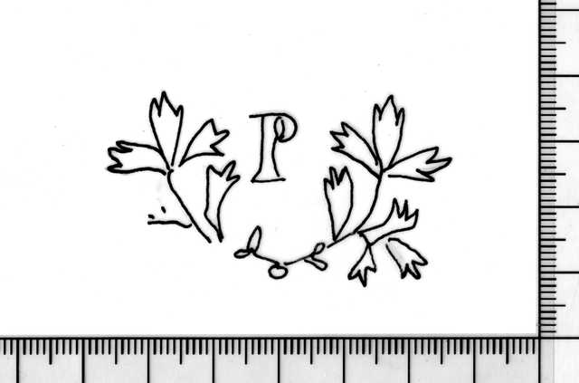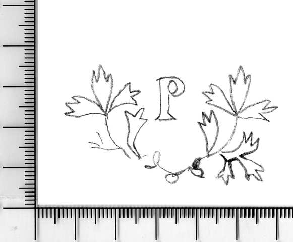 Tipo de filigrana: Doble Parte estudiada: Derecha Código del Motivo: V.02.02.00 Descripción: Filigrana izquierda: Letra A, sobre hojas de laurel. Filigrana derecha: Letra P, sobre hojas de laurel. Estructura: Tradicional de líneas Altura (mm): 31 Anchura (mm): 54 Tipo de papel: Continuo Posición en la hoja: Derecha inferior Distancia entre corondeles: Posición en relación al texto: Perpendicular al texto hacia arriba Origen de los datos: Datos obtenidos del original País de localizatión del molino: España Autor de los datos de este registro: María Dolores Díaz de Miranda Macías Estado de la hoja: Sin cortar bordes Altura de la hoja: 313 Anchura de la hoja: 430 Color de la hoja: Natural Estado de conservación: Bueno Institución: Archivo Municipal de Oviedo.