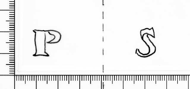 Tipo de filigrana: Doble Parte estudiada: Derecha Código del Motivo: V.02.01.00 Descripción: Filigrana izquierda: letra P Filigrana derecha: letra S Estructura: Tradicional de líneas Altura (mm): 13 Anchura (mm): 9 Tipo de papel: Continuo Posición en la hoja: Derecha inferior Distancia entre corondeles: Posición en relación al texto: Perpendicular al texto hacia arriba Origen de los datos: Datos obtenidos del original País de localizatión del molino: España Lugar del molino: Cataluña Autor de los datos de este registro: María Dolores Díaz de Miranda Macías Estado de la hoja: Cortado borde izquierdo e inferior Altura de la hoja: 309 Anchura de la hoja: 425 Color de la hoja: Natural Estado de conservación: Bueno Institución: Archivo Municipal de Oviedo.