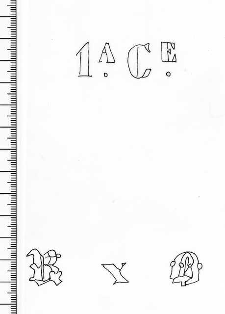 Tipo de filigrana: Sencilla Parte estudiada: Toda la filigrana Código del Motivo: V.08.01.00 Descripción: Letras y números: 1A.CE. / R A. Estructura: Tradicional de líneas Altura (mm): 111 Anchura (mm): 80 Tipo de papel: Continuo Posición en la hoja: Derecha centro Distancia entre corondeles: Posición en relación al texto: Perpendicular al texto hacia arriba Origen de los datos: Datos obtenidos del original País de localizatión del molino: España Lugar del molino: Cataluña Autor de los datos de este registro: María Dolores Díaz de Miranda Macías Estado de la hoja: Cortado borde izquierdo, superior y derecho Altura de la hoja: 313 Anchura de la hoja: 215 Color de la hoja: Natural Estado de conservación: Bueno Institución: Archivo Municipal de Oviedo.