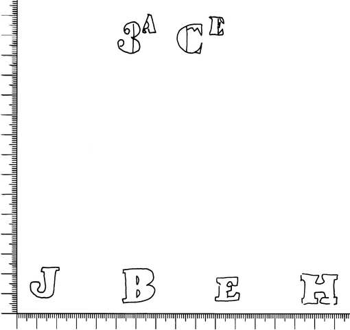 Tipo de filigrana: Sencilla Parte estudiada: Toda la filigrana Código del Motivo: Y.01.00.00 Descripción: Letras J B E H surmontadas por 3A C E. Estructura: Tradicional de líneas Altura (mm): 144 Anchura (mm): 154 Tipo de papel: Vitela Posición en la hoja: Derecha inferior Distancia entre corondeles: Posición en relación al texto: Origen de los datos: Datos obtenidos del original País de localizatión del molino: España Lugar del molino: Alcoy, Alicante. Fabricante: Juan Boronat e Hijo. Autor de los datos de este registro: María Dolores Díaz de Miranda Macías Estado de la hoja: Cortado borde derecho Altura de la hoja: 312 Anchura de la hoja: 430 Color de la hoja: Natural Institución: Archivo Municipal de Oviedo.