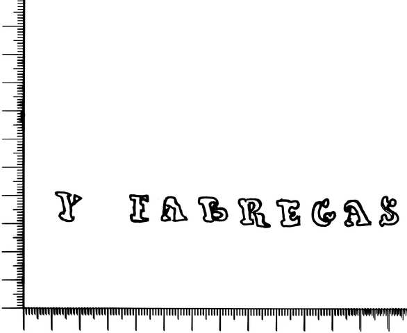 Tipo de filigrana: Doble Parte estudiada: Derecha Código del Motivo: W.02.01.00 Descripción: Filigrana izquierda: ALEGRE Filigrana derecha: Y FABREGAS. Estructura: Tradicional de líneas Altura (mm): 10 Anchura (mm): 122 Tipo de papel: Continuo Posición en la hoja: Derecha inferior Distancia entre corondeles: Posición en relación al texto: Perpendicular al texto hacia abajo Origen de los datos: Datos obtenidos del original País de localizatión del molino: España Lugar del molino: Cataluña Fabricante: Alegre y Fabregas. Autor de los datos de este registro: María Dolores Díaz de Miranda Macías Estado de la hoja: Sin cortar bordes Altura de la hoja: 312 Anchura de la hoja: 434 Color de la hoja: Natural Estado de conservación: Bueno Institución: Archivo Municipal de Oviedo.