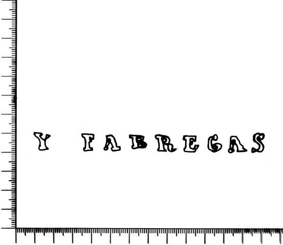 Tipo de filigrana: Doble Parte estudiada: Derecha Código del Motivo: W.02.01.00 Descripción: Filigrana izquierda: las letras ALEGRE Y FABREGAS. Filigrana derecha igual que la izquierda. Estructura: Tradicional de líneas Altura (mm): 10 Anchura (mm): 122 Tipo de papel: Continuo Posición en la hoja: Derecha inferior Distancia entre corondeles: Posición en relación al texto: Perpendicular al texto hacia abajo Origen de los datos: Datos obtenidos del original País de localizatión del molino: España Lugar del molino: Cataluña Fabricante: Alegre y Fabregas Autor de los datos de este registro: María Dolores Díaz de Miranda Macías Estado de la hoja: Sin cortar bordes Altura de la hoja: 311 Anchura de la hoja: 432 Color de la hoja: Natural Estado de conservación: Bueno Institución: Archivo Municipal de Oviedo.