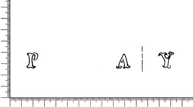 Tipo de filigrana: Contramarca Parte estudiada: Izquierda Código del Motivo: V.03.00.00 Descripción: Filigrana izquierda: Escudo de España. Encina corona real. Franqueado a la izquierda por 2A y a la derecha por CE. En la parte inferior las iniciale PA (contramarca) Filigrana derecha: igual que la izquierda pero debajo la inicial Y (contramarca). Estructura: Tradicional de líneas Altura (mm): 14 Anchura (mm): 90 Tipo de papel: Continuo Posición en la hoja: Izquierda inferior Distancia entre corondeles: Posición en relación al texto: Perpendicular al texto hacia arriba Origen de los datos: Datos obtenidos del original Información adicional: Esta filigrana representa lo mismo que la 001254 pero cambia la contramarca. Lo que se estudia es la contramarca País de localizatión del molino: España Lugar del molino: Cataluña Autor de los datos de este registro: María Dolores Díaz de Miranda Macías Estado de la hoja: Sin cortar bordes Altura de la hoja: [315] Anchura de la hoja: [430-444] Color de la hoja: Natural Institución: Archivo Municipal de Oviedo.