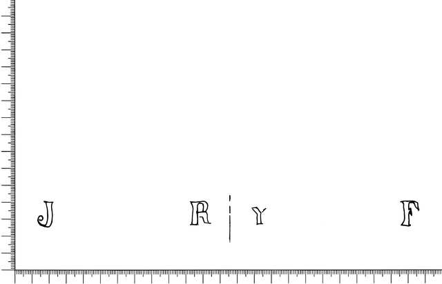 Tipo de filigrana: Contramarca Parte estudiada: Izquierda Código del Motivo: V.04.00.00 Descripción: Filigrana izquierda: Escudo de España. Encina corona real. Franqueado a la izquierda por 2A y a la derecha por CE. En la parte inferior las iniciale J R (contramarca) Filigrana derecha: igual que la izquierda pero debajo las iniciales Y F (contramarca). Estructura: Tradicional de líneas Altura (mm): 15 Anchura (mm): 102 Tipo de papel: Continuo Posición en la hoja: Izquierda inferior Distancia entre corondeles: Posición en relación al texto: Perpendicular al texto hacia abajo Origen de los datos: Datos obtenidos del original Información adicional: Esta filigrana representa lo mismo que la 001254 pero cambia la contramarca. Lo que se estudia es la contramarca País de localizatión del molino: España Lugar del molino: Cataluña Autor de los datos de este registro: María Dolores Díaz de Miranda Macías Estado de la hoja: Sin cortar bordes Altura de la hoja: [315] Anchura de la hoja: [430-444] Color de la hoja: Natural Institución: Archivo Municipal de Oviedo.
