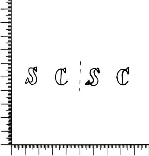 Tipo de filigrana: Contramarca Parte estudiada: Derecha Código del Motivo: V.04.00.00 Descripción: Filigrana izquierda: Escudo de España. Con corona real española, cerrada con ocho florones. Franq a la izquierda por 2A y a la derecha por CE. Debajo iniciales SC (contramarca) Filigrana derecha: igual que la izquierda Estructura: Tradicional de líneas Altura (mm): 13 Anchura (mm): 32 Tipo de papel: Continuo Posición en la hoja: Derecha inferior Distancia entre corondeles: Posición en relación al texto: Perpendicular al texto hacia arriba Origen de los datos: Datos obtenidos del original Información adicional: Esta filigrana representa lo mismo que la 001251 pero cambia la contramarca. Lo que se estudia es la contramarca País de localizatión del molino: España Lugar del molino: Cataluña Autor de los datos de este registro: María Dolores Díaz de Miranda Macías Estado de la hoja: Sin cortar bordes Altura de la hoja: [311-315] Anchura de la hoja: [430-444] Color de la hoja: Natural Estado de conservación: Bueno Institución: Archivo Municipal de Oviedo.