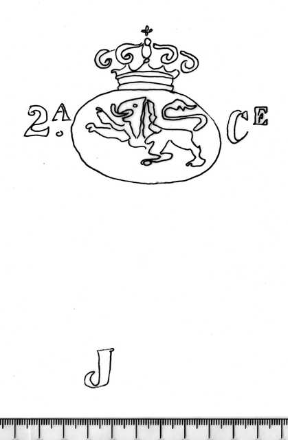 Tipo de filigrana: Doble Parte estudiada: Izquierda Código del Motivo: Y.01.00.00 Descripción: Filigrana izquierda: óvalo con corona real y león rampante en el interior franqueado a la izquierda por 2A y a la derecha por CE. Abajo la inicial J (contramarca). Filigrana derecha: igual que la pero la inicial A (contramarca). Estructura: Tradicional de líneas Altura (mm): 149 Anchura (mm): 102 Tipo de papel: Continuo Posición en la hoja: Izquierda centro Distancia entre corondeles: Posición en relación al texto: Perpendicular al texto hacia arriba Origen de los datos: Datos obtenidos del original País de localizatión del molino: España Lugar del molino: Cataluña Autor de los datos de este registro: María Dolores Díaz de Miranda Macías Estado de la hoja: Sin cortar bordes Altura de la hoja: 311 Anchura de la hoja: 434 Color de la hoja: Natural Estado de conservación: Bueno Institución: Archivo Municipal de Oviedo.
