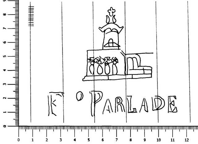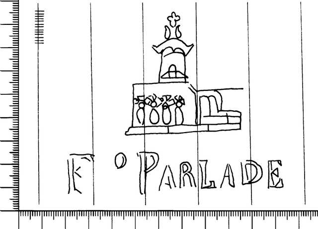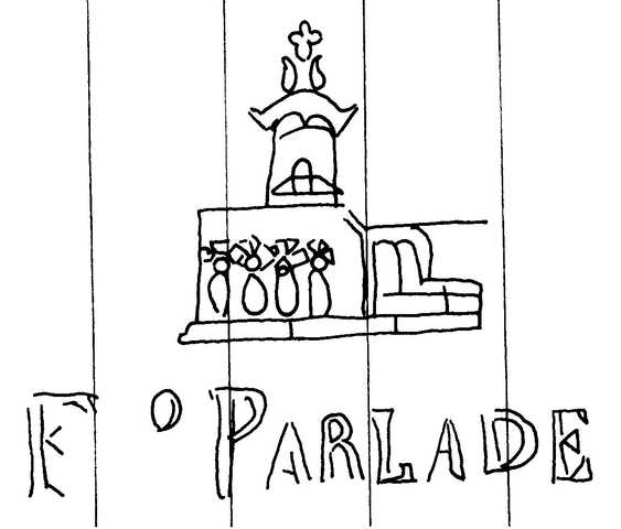Tipo de filigrana: Sencilla Parte estudiada: Toda la filigrana Código del Motivo: K.05.01.00 Descripción: Iglesia; a los pies las letras Fº PARLADE. Estructura: Tradicional de líneas Altura (mm): 79 Anchura (mm): 93 Tipo de papel: Verjurado Posición en la hoja: Derecha centro Nº de corondeles en la hoja: 18 Distancia entre corondeles: Situada entre el corondel 12 y el corondel 17 Posición en relación al texto: Origen de los datos: Datos obtenidos del original País de localizatión del molino: España Lugar del molino: Sant Pere de Riudebitlles, Barcelona. Fabricante: Francesc Parladé Autor de los datos de este registro: María Dolores Díaz de Miranda Macías Tipo de uso: Papel sellado Estado de la hoja: Cortados todos los bordes Altura de la hoja: 313 Anchura de la hoja: 424 Color de la hoja: Natural Institución: Archivo Municipal de Oviedo.