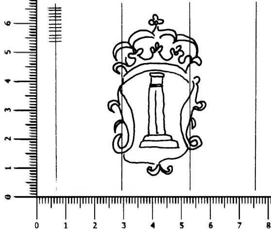 Tipo de filigrana: Sencilla Parte estudiada: Toda la filigrana Código del Motivo: T.02.07.03 Descripción: Escudo coronado en el interior una columna. Estructura: Tradicional de líneas Altura (mm): 56 Anchura (mm): 34 Tipo de papel: Verjurado Posición en la hoja: Derecha centro Nº de corondeles en la hoja: 19 Distancia entre corondeles: Situada entre el corondel 13 y el corondel 16 Posición en relación al texto: Origen de los datos: Datos obtenidos del original País de localizatión del molino: España Lugar del molino: Cataluña. Fabricante: Muntal Autor de los datos de este registro: María Dolores Díaz de Miranda Macías Tipo de uso: Papel sellado Estado de la hoja: Cortado borde derecho e izquierdo Altura de la hoja: 309 Anchura de la hoja: 428 Color de la hoja: Natural Institución: Archivo Municipal de Oviedo.